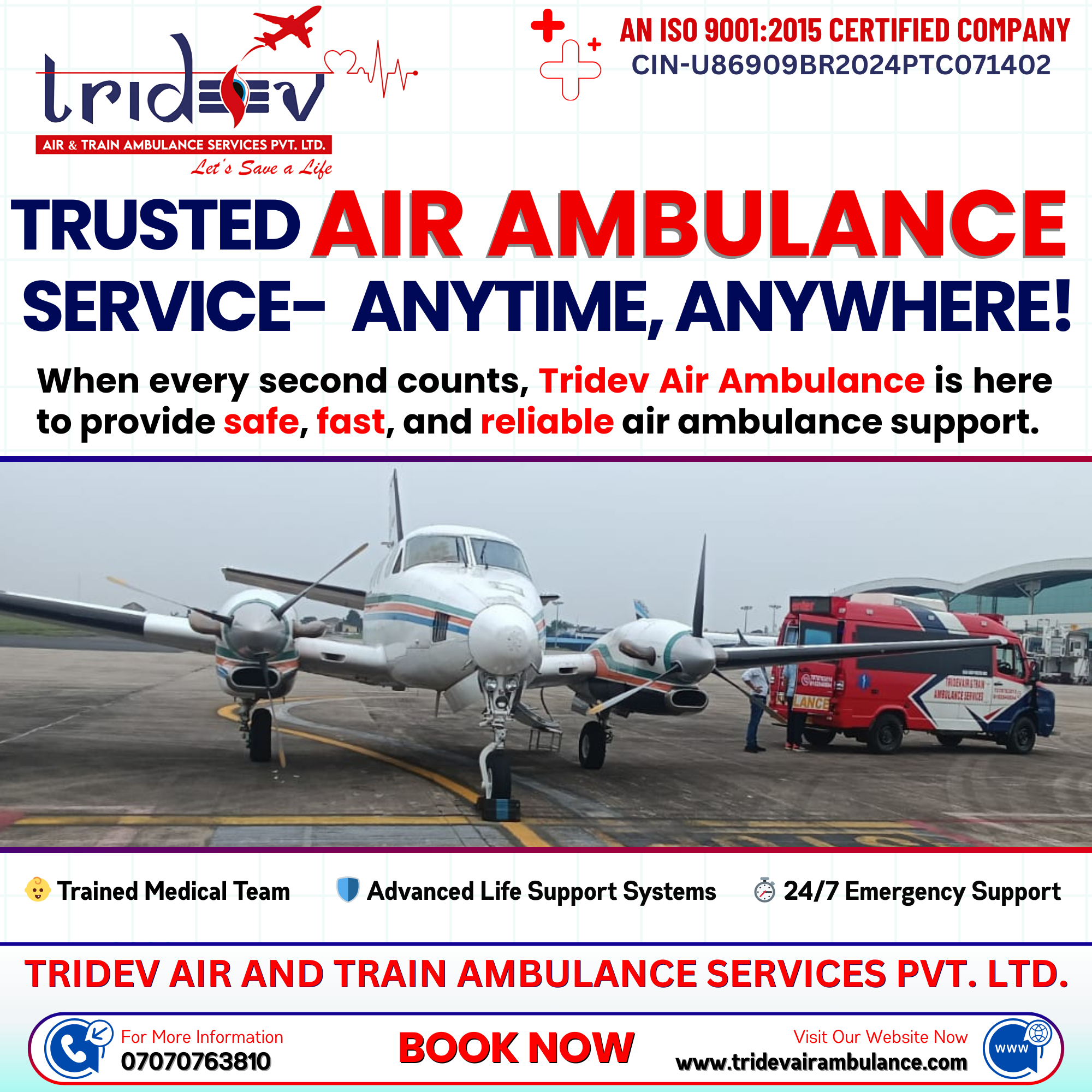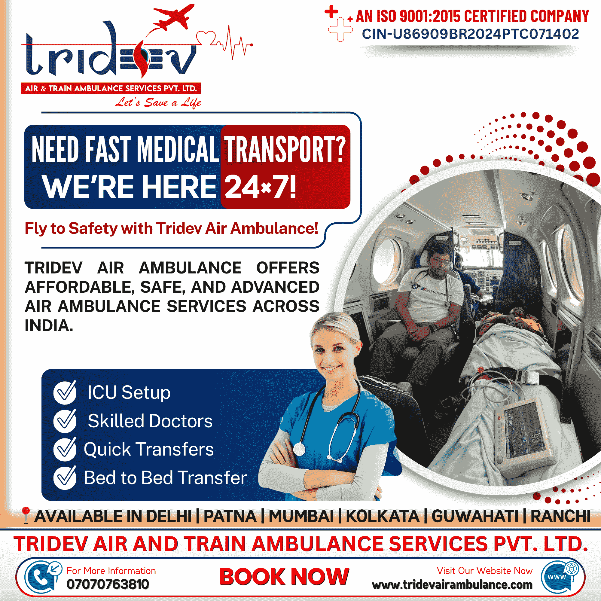 The trustworthy flight service for a patient is here. Tridev Air Ambulance Services in Mumbai provides exceptional care and support for patients during transport. Tridev...